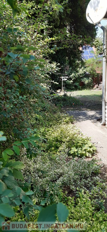 A tágas zöld kertben gépkocsival parkolhat,illetve két kerti tároló is helyet kapott.Az egyikben mosógép használható.