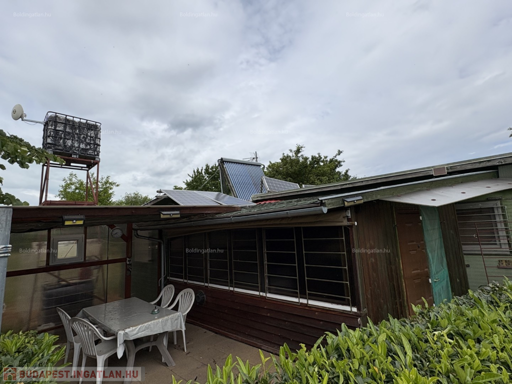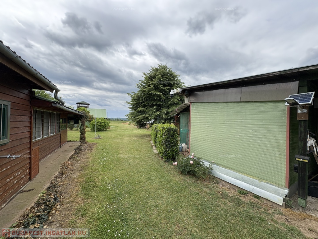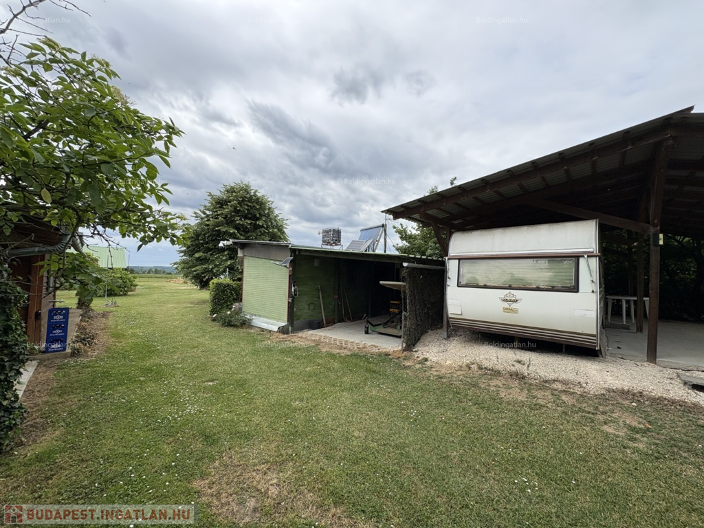 Somogyszentpálon csendes környezetben hétvégi ház, 300 m hosszú és 50 m széles sárkányrepülésre, és UL repülőgépek fel és leszállására alkalmas - jelenleg működési engedéllyel nem rendelkező - reptérnek használt területtel, gyümölcsöskerttel eladó. Két épület található a területen, összesen három szobával, amely hat fő elszállásolására nyújt lehetőséget, valamint egy 8 m hosszú lakókocsi további négy személy számára nyújt szállás lehetőséget. A telken található egy fedett kocsibeálló, és a kerti gépek számára tároló. Az épületek áramellátása sziget üzemű napelemmel megoldott, a meleg vizet vákumcsöves szolár kollektív rendszer biztosítja, a fűtést parapetes gázkonvektorok szolgáltatják, illetve a vizet hidrofor juttatja a kútból az épületbe. Tartozik hozzá egy 80 m2-es hangár és egy 12 m hosszú konténer is, amely akár kisebb raktárként is funkcionálhat, valamint a telek végében egy 9 m-es magasles áll. A terület teljesen körbe van kerítve, kamera és riasztórendszerrel van ellátva. Telek: 18.345 m2. Amennyiben az ingatlan felkeltette az érdeklődését, kérem hivatkozzon a 709. számú ajánlatra! Irodánk címe: Kaposvár Irányi D. u. 9.