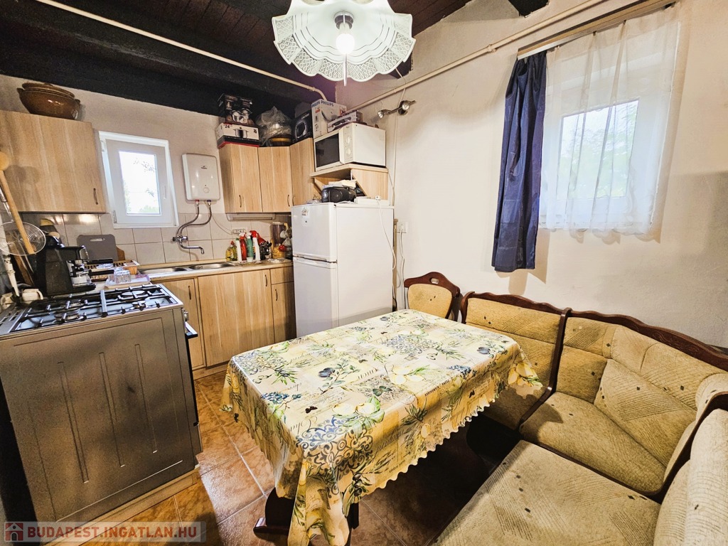 A lakóház 55 m2-es jó elosztású: 2 szoba, közlekedő, konyha, fürdő, 13 m²-es pince és fedett terasz. 2023-ban korszerű műanyag nyílászárókat építettek be, a fűtésről gázkonvektorok és mindkét szinten inverteres klíma gondoskodik, melegvizet villanybojler állítja elő. Az autó parkolás egy 20 m²-es, mobil lemezgarázs szolgál.