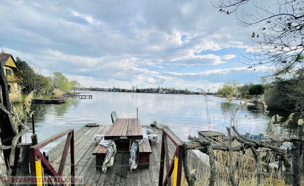 Szigetszentmiklóson, a Kavicsos-tó partján eladó egy 90 m²-es, kétszintes, téliesített nyaraló, saját stéggel. A fa szerkezetű épület egész évben használható – fűtése cserépkályhával és klímával megoldott.