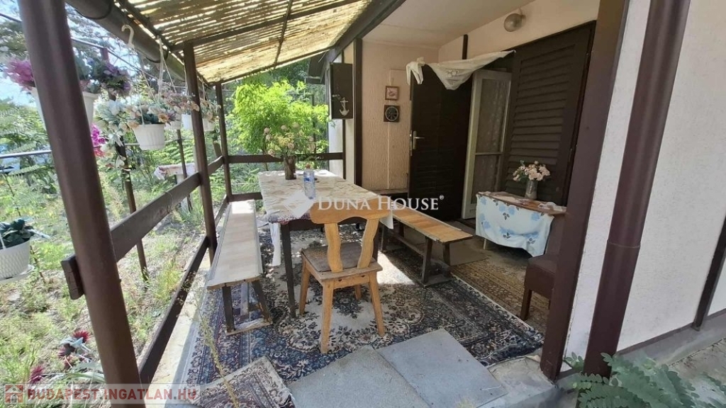 Tápiószentmárton Üdülőterületen - csendes, rendezett utcában - eladó - a gyógyvizes strand közelében - könnyűszerkezetes, szigetelt nyaraló bútorozottan - akár azonnali birtokba adással tehermentesen! (30 m2). Az ingatlan a fedett teraszon közelíthető meg és a nappali/étkezőbe jutunk. Innen balra 2 egymás mellett lévő fél szoba lett kialakítva. Szemben pedig a konyhát találjuk! A ház mellett még egy kisebb tároló is kiépítésre került! Kinti zuhany és mosdó segíti a kényelmet! A házba a villany bevezetésre került és telken belül a vezetékes vizet megtaláljuk!
