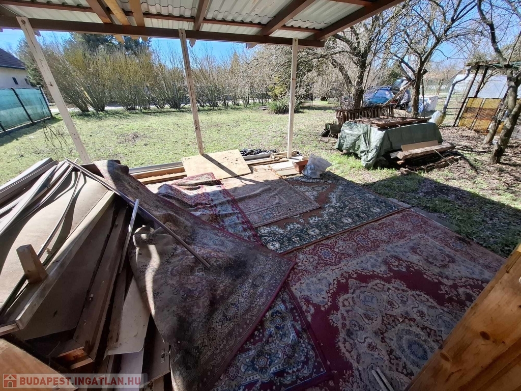 Tápiószentmárton üdülőterületén eladó 2 kis nyaraló bútorozottan egy telken belül, mely akár azonnal birtokba vehető 1/1 tulajától tehermentesen! Mindkét ház könnyűszerkezetes, szigetelt! Az első házba a villany bevezetésre került (16 amper). A telken belül a vezetékes víz megtalálható, valamint az utcában a gáz is. Az első ház (30 m2) + 14,5 m2-es nagy fedett teraszon keresztül közelíthető meg, majd az előszobába lépünk. Jobbra egy kis konyha került kialakításra. Innen tovább pedig a szobába érünk. A ház mellett még egy szoba került kialakításra, mely teljesen külön bejáaton közelíthető meg. Egy kémény is kiépítésre került, így akár kandalló vagy kályha fűtés berakható, de elektromos fűtési lehetőséget is ki lehet alakítani.