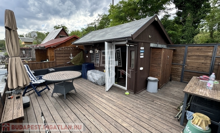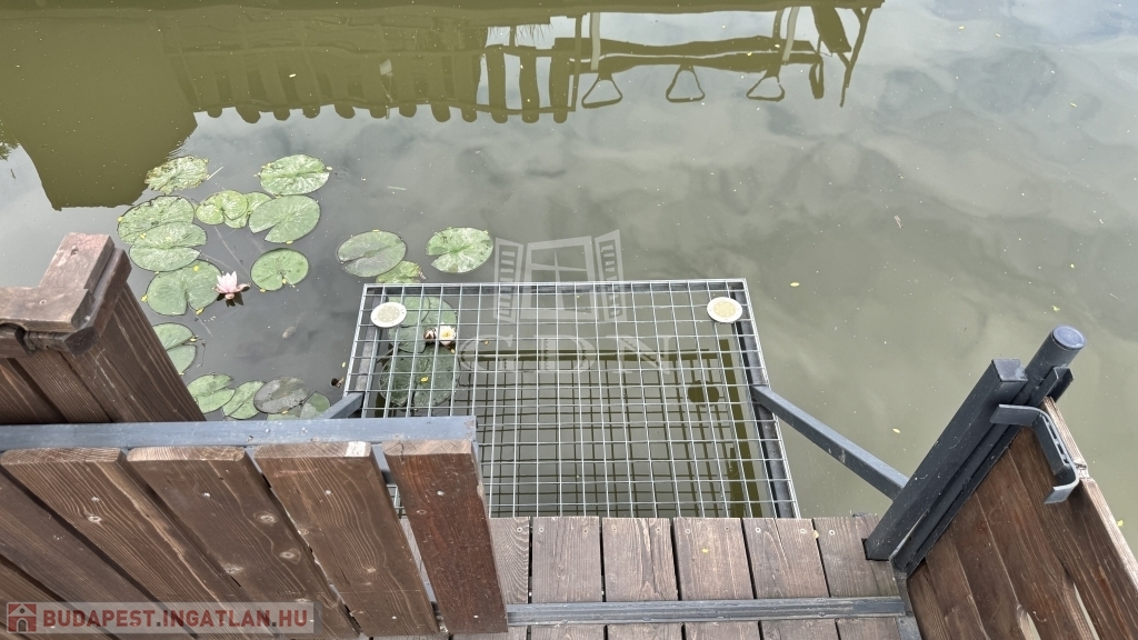 Környézetvédelmi csendes területen álló 42m2-es stég (7x6), amin egy 16m2-es (4x4) teljesen felújított faház található.