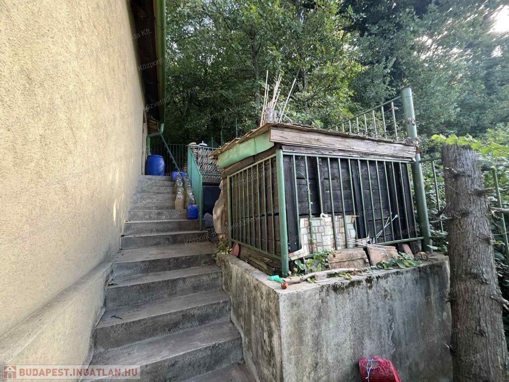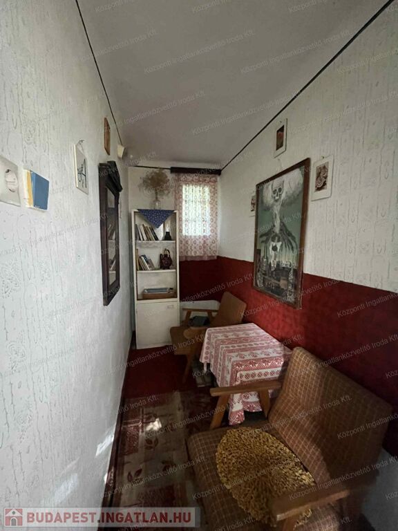 Az ingatlan 2 külön megközelíthető, egymással szembeni telekből áll, összesen 644 nm-es. A151 m2-es telken egy panel szerkezetű 2 szintes (24-24 m2) házikó áll, melynek alsó szintjén konyha és kamra található, ahonnan egy terasz nyílik, a felső szintjén előszoba, szoba és WC kapott helyet. A tetőtér tárolóként funkcionál, a ház mellett egy könnyűszerkezetes fa tároló található. Az ingatlan vezetékes vízzel, emésztővel ellátott, villanyórával felszerelt (20 amper). A kémény megépült, a fűtés jelenleg kályhával biztosított. Az épület 5 cm-es homlokzati szigetelést kapott.