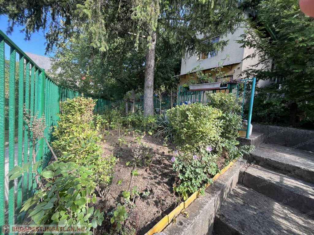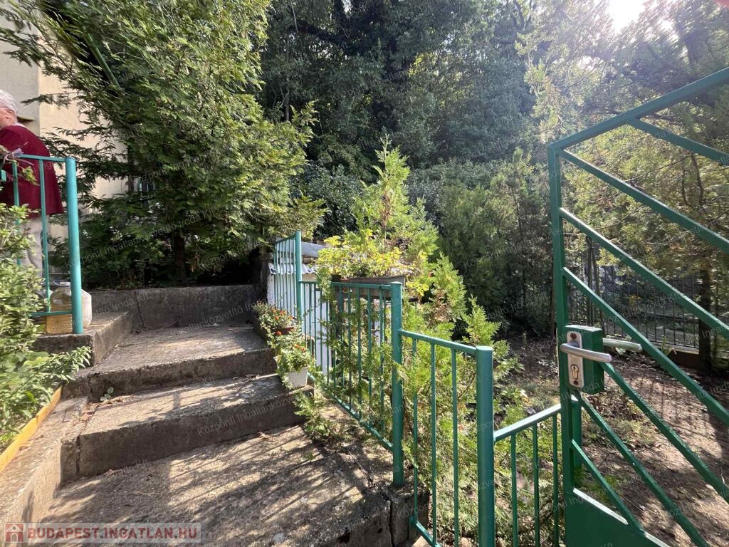 Az alsó kertből kisajátításra került 70 m2-es terület az autópálya bővítése céljából, így az 493 m2. Itt több gyümölcsfa és szőlő is található, 2 db kerti csap áll rendelkezésre a növények gondozásához. A mindennapi szükségletek elvégzéséhez egy kerti WC is rendelkezésre áll. A megtermelt zöldégek, gyümölcsök a 6 m2-es 150 cm belmagasságú pincében is elhelyezhetők télire. A telek végén pár éven belül zajzáró fal épül.