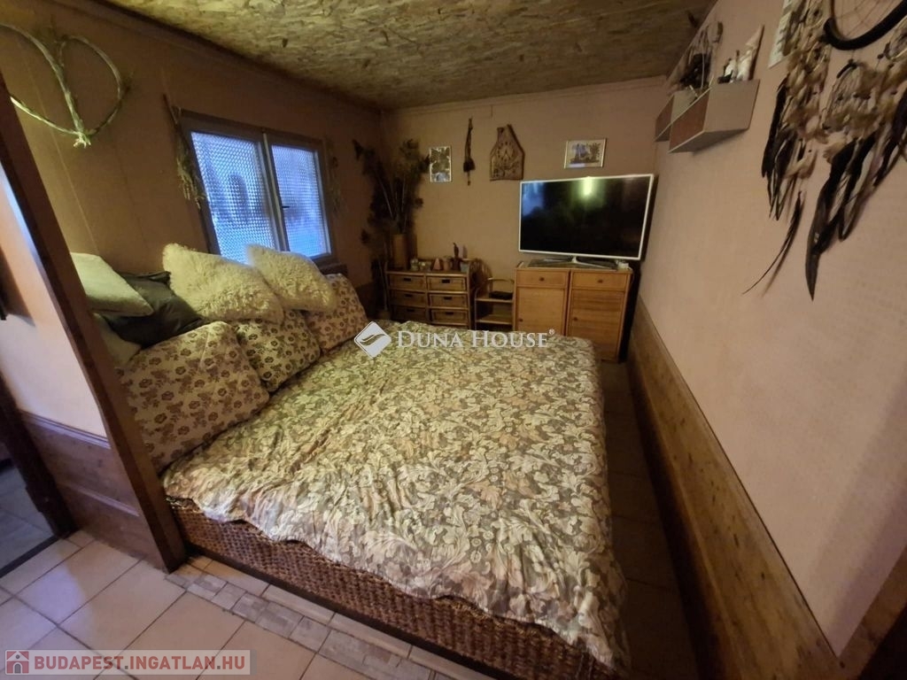 Tóalmás zártkerti részén eladó szigetelt - téliesített - jelenleg lakóházként használt könnyűszerkezetes házikó a berendezéssel együtt + garázzsal, szaletlivel és kerti tárolóval. A ház tetőtere 15 cm-es közetgyapot szigetelssel ellátott. A külső falak 10 cm-es közetgyapot szigetelést kaptak + panel elemeket. A födémen szintén 10 cm-es közetgyapot szigetelést találunk. Az épületbe a vezetékes víz és a villany is bevezetésre került! A beépített terasz fóliával van ellátva. A házban 5 éve a villanyhálózat (16 amperes és firelékkel ellátott) és a vízhálózat is kicserélésre került. Gyönyörű, parkosított dupla telekkel. Az ingatlan elosztása kiváló - egy tágas, beépített teraszba lépünk - mely nappaliként van jelenleg használva - innen is át tudunk lépni jobbra a garázsba. A garázs két oldalról is megközelíthető és elektromos garázsajtóval ellátott, ahogyan a kerti autóbejártó is. Az otthon melegét 3 db BVF elektromos panel adja, mely energiatakarékos és légszűrős berendezéssel is ellátott. Innen egyenesen tovább haladva érünk a konyhába, ahonnan jobbra egy nappali rész - melyből az egyik szoba nyílik és mellette külön bejárattal egy másik szoba, amivel szembe található a fürdő/mosdó helyiség! A konyhából tovább haladva jobbra egy tágas étkezőt találunk - mely akár szobává is alakítható. Ez alatt találjuk a pincét!Kertje körbe kerített, több gyümölcsfával és rengeteg virágzó növénnyel - de füves részt is találunk. Hátul pedig a kerti szerzszámoknak egy fa tárolót! A telken fúrt kút is megtalálható - de kerti csapot is találunk (3 db). Az ingatlan nem hitelezhető - készpénzes vevőt várunk!A központ autóval 5 percnyire taláható - de volán busz megálló is van kb. 600 méterre a háztól.
