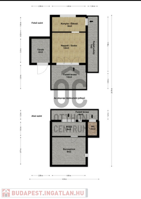 - bruttó 46 m² / nettó 40 m² (pincével együtt)
