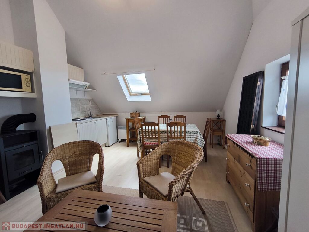 Tetőtér: galériás nappali-konyha, hálószoba, fürdő.