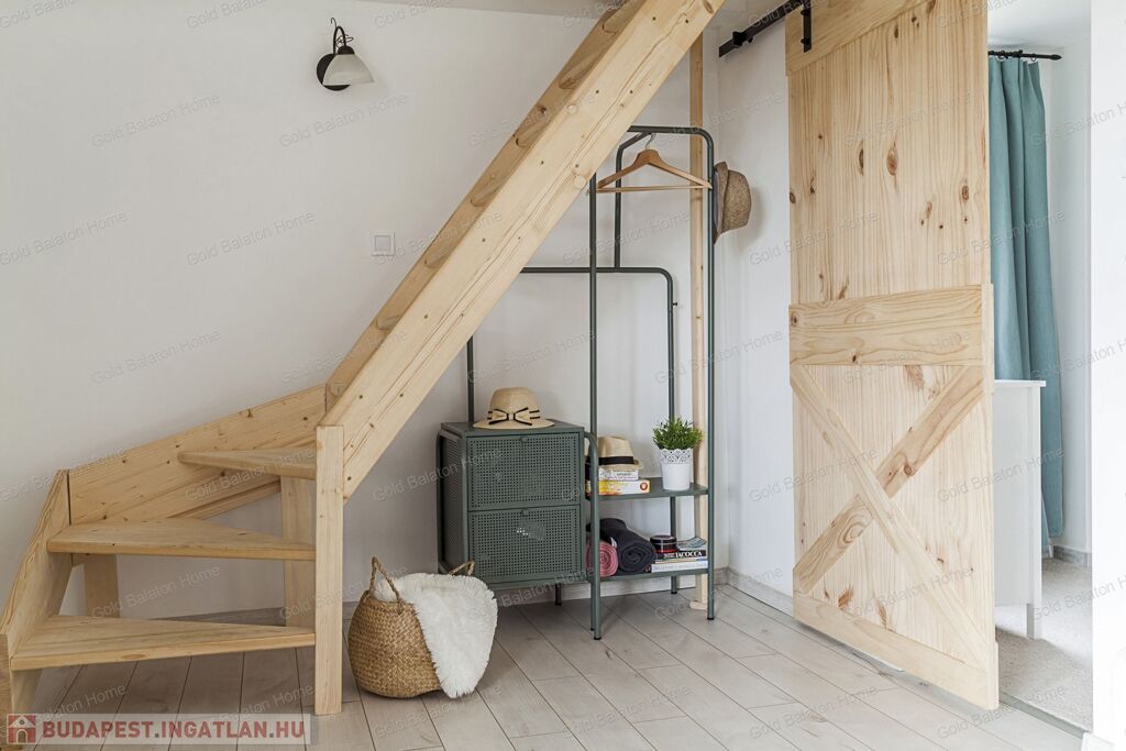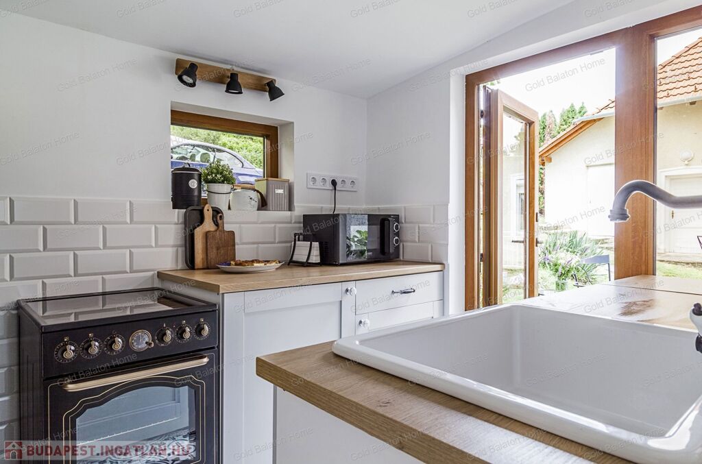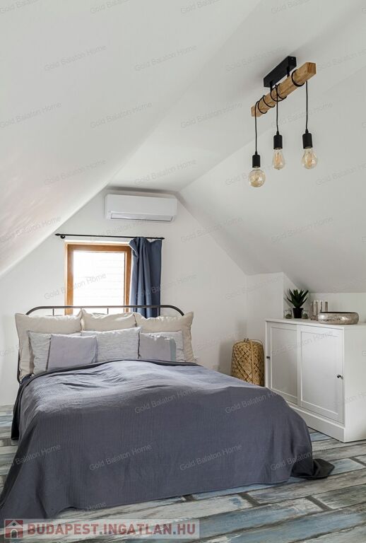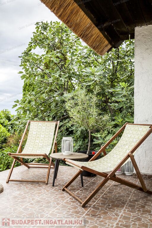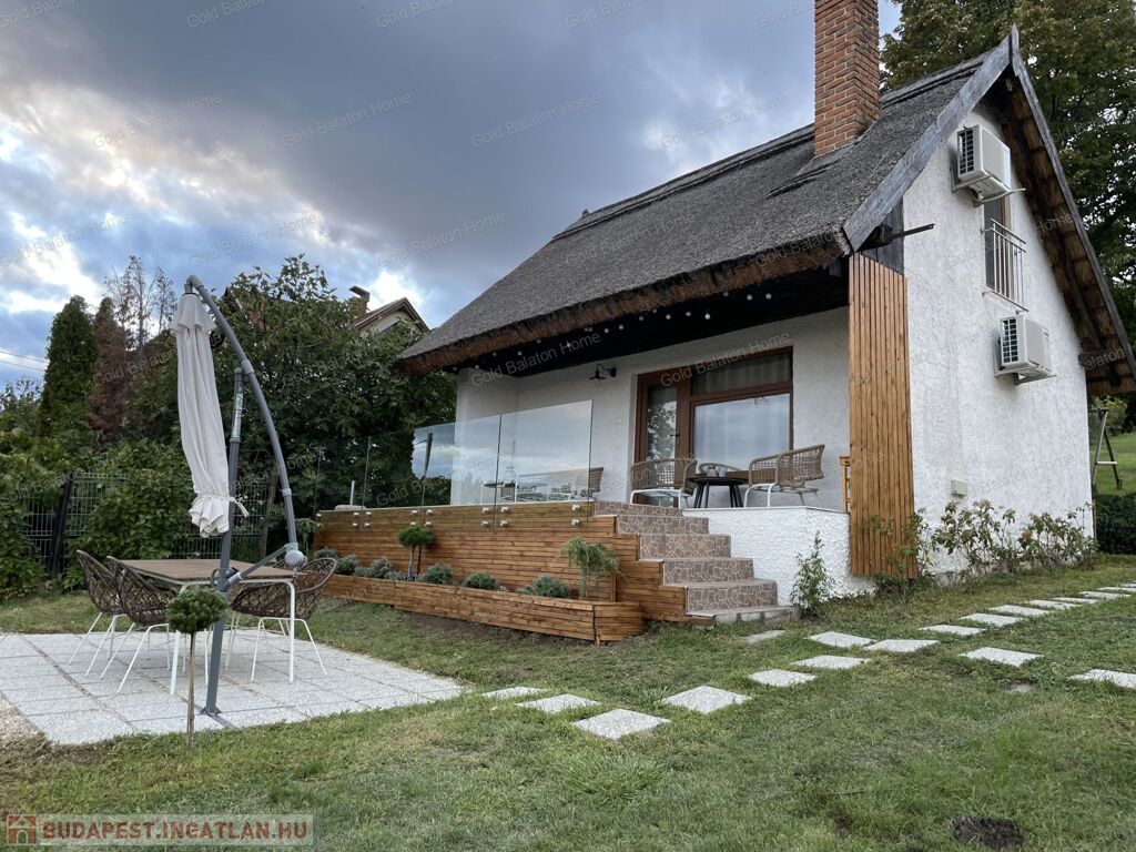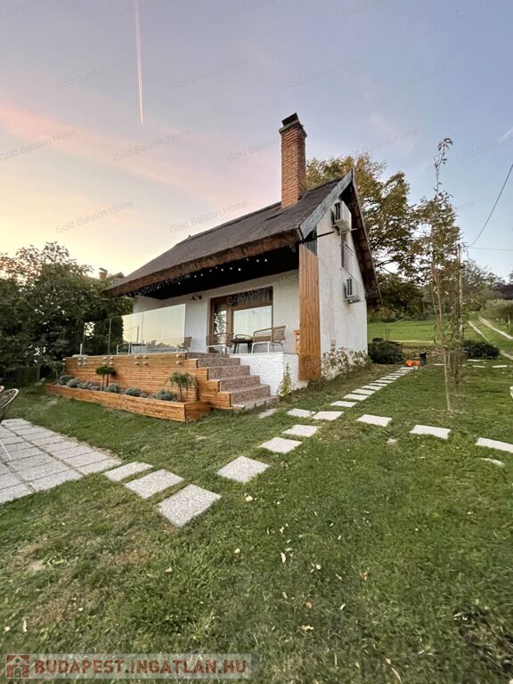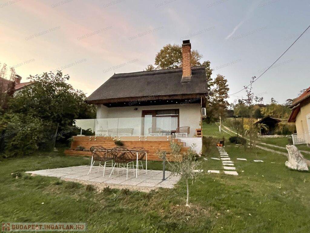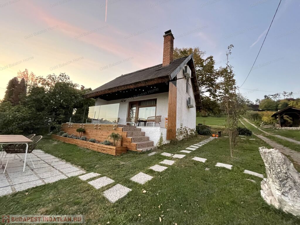 A kitűnő statikai állapotban lévő, a teljesség igényével, belsőépítész tervei által felújított, belterületi, BALATONI panorámás, tetőtér beépítéses nyaraló, csendes, zöldövezetben helyezkedik el a település északi oldalán az erdő szomszédságában. LKe1-Sz övezet (kertvárosias lakóterület, 30 %-os beépíthetőség) ezáltal a nyaraló bővíthető.