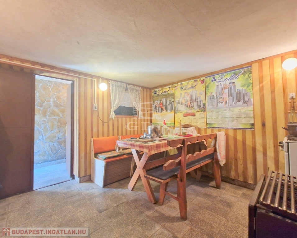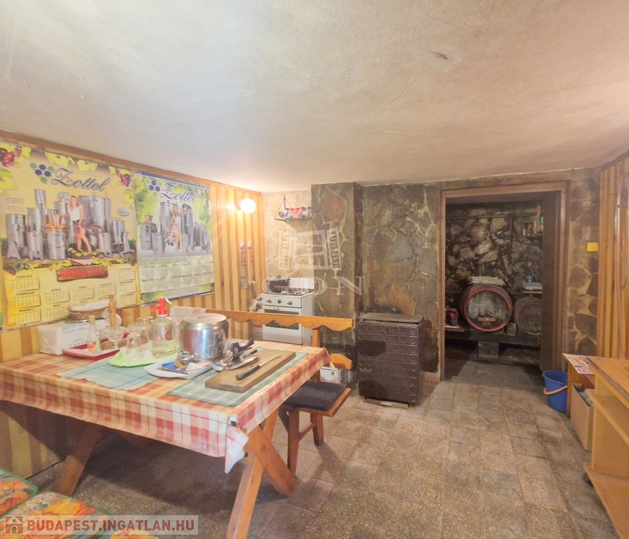 Az alsó szinten találjuk a konyhát, az étkezőt és a jelenleg tárolásra használt pincét.