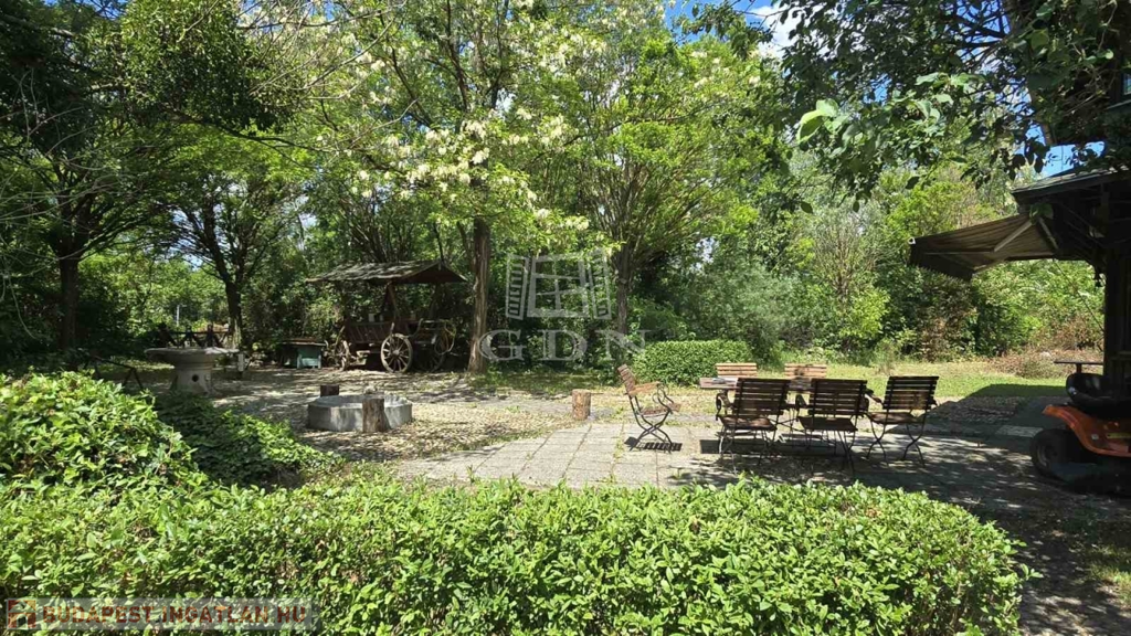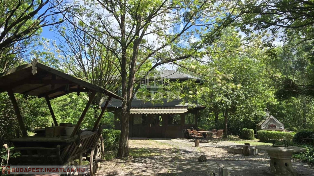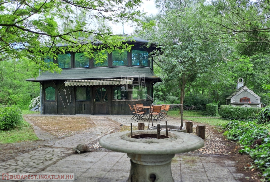 A területen egy 80 m²-es, kétszintes ház áll, amely ideális helyszín a pihenéshez. Az alsó szinten konyha, nappali és egy mosdó található, míg az emeleten egy kellemes, klimatizált helyiség várja a tulajdonosát, ahol az év bármely szakában zavartalanul élvezhető a nyugalom. A ház minden közművel ellátott: víz, villany és szennyvíz is be van vezetve, így biztosított a kényelmes tartózkodás.