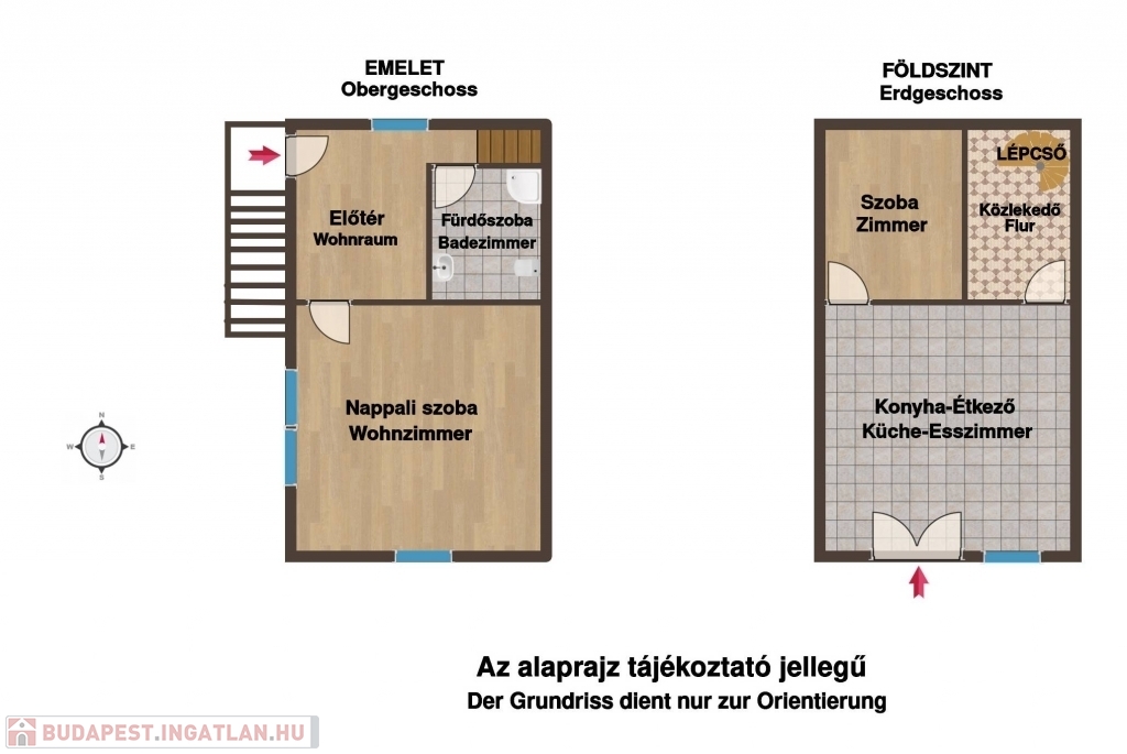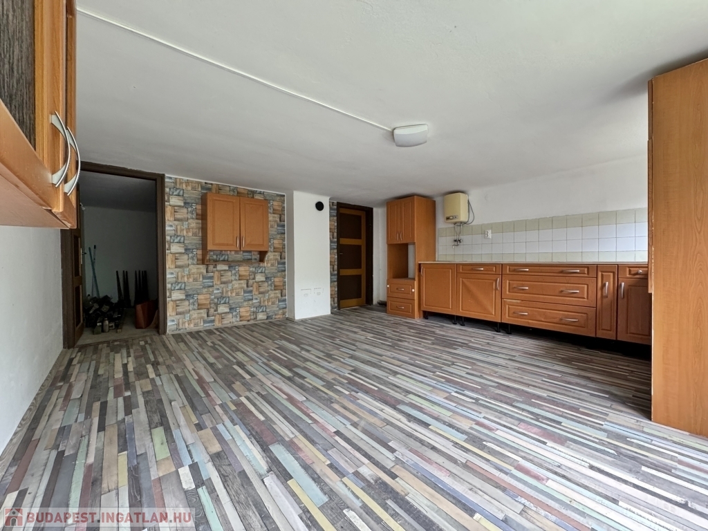 A ház alsó szintjén egy tágas étkezőkonyha található, amely kiválóan alkalmas családi vagy baráti összejövetelekhez. Ezen a szinten helyet kapott egy kényelmes szoba, valamint egy külön helyiség, amelyből egy belső lépcső vezet az emeletre. A felső szintre érkezve egy világos, tágas előtér vagy szoba fogad, amely többféle funkcióra is alkalmas lehet dolgozószobának, olvasósaroknak vagy vendégszobának is kiváló.