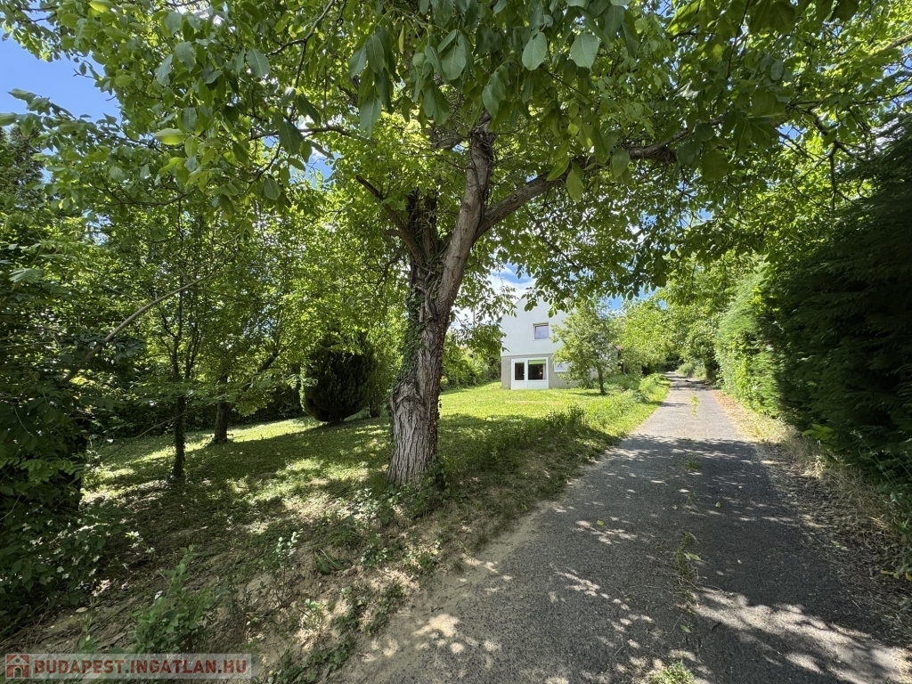 Az ingatlan 1100 m²-es, parkosított, gondozott telken fekszik, melyet árnyas, nagy lombos fák szegélyeznek tökéletes helyszínt biztosítva a nyugodt kikapcsolódáshoz.