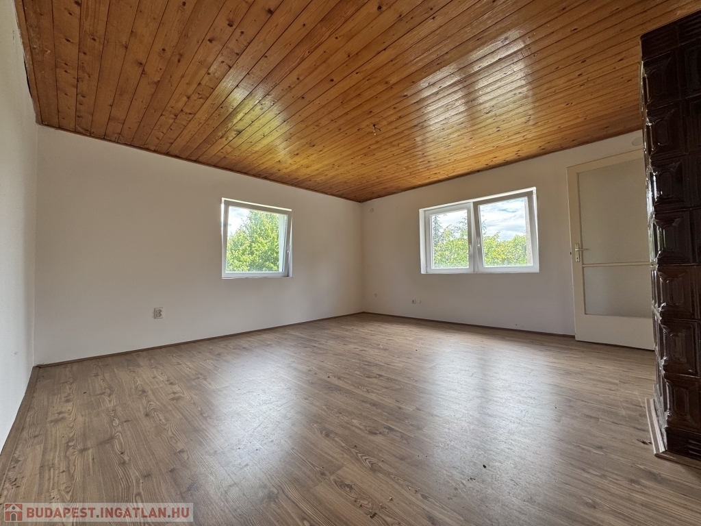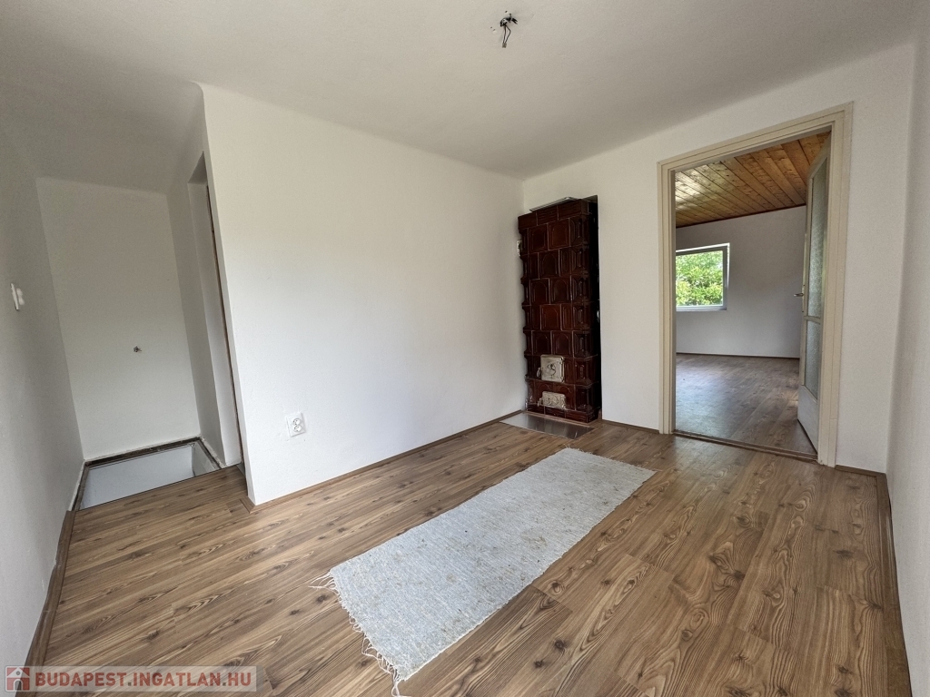 Itt található a zuhanyzós fürdőszoba WC-vel, valamint egy napfényes, különösen tágas szoba, amely jelenleg nappaliként funkcionál. Az innen nyíló ablakokból gyönyörű, panorámás kilátás nyílik a környék természeti szépségeire. A ház fűtése kályhával megoldott, a felső szinten pedig egy gyönyörű, esztétikus cserépkályha biztosítja a kellemes meleget a hidegebb hónapokban is, így az ingatlan egész évben lakható.