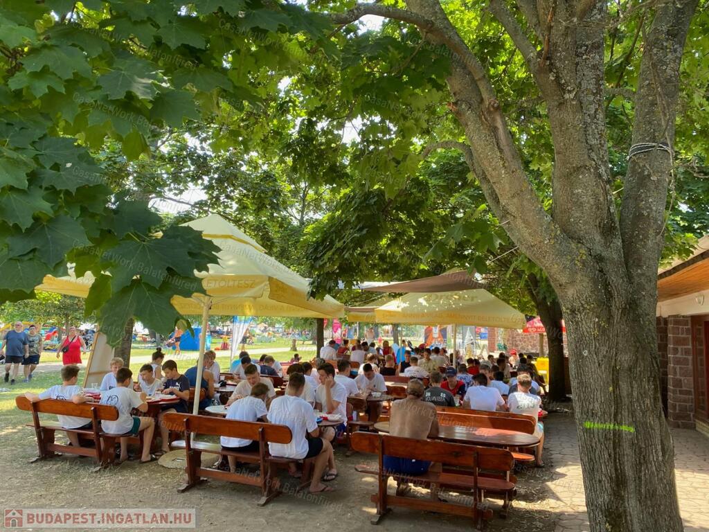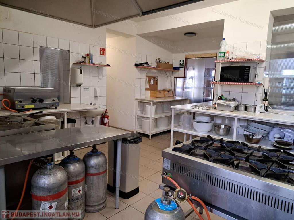 A felújítás során az eszközpark korszerűsítésére is sor került, mint például: 6 tálcás Rational kombisütő, beépített melegen-tartó pult, beépített vitrines hidegen-tartó pult, 6 rózsás gáztűzhely, 4 rózsás gáztűzhely, nagy teljesítményű gázzsámolyok, nagy teljesítményű fritőzök, lángossütő, dagasztógép, hűtők és fagyasztók, rozsdamentes GN edények, tálcamosó, stb., mely szintén a vételár részét képezi! A konyhai berendezések értéke körülbelül 10Mft. Az étteremhez egy a strandon lévő kb. 150 fős árnyékos terasz is tartozik, teljes bútorzattal.