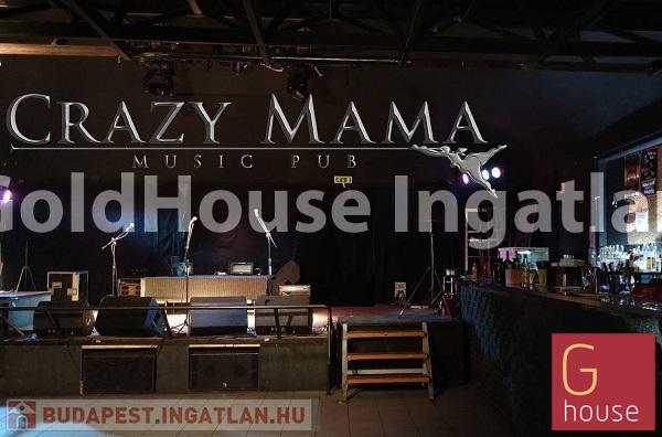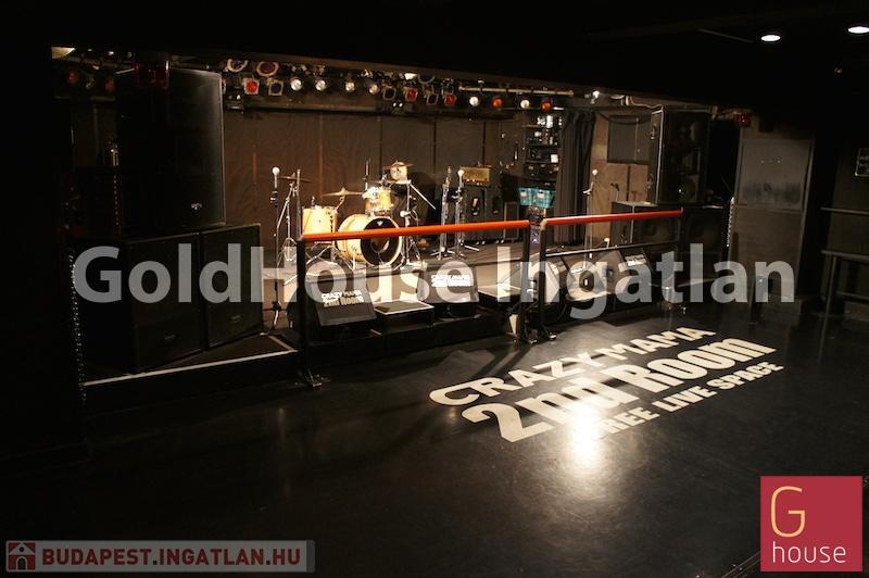 Melegkonyha, kiépített színpad, mellette bárpult, VIP rész külön bárrésszel, iroda stb.