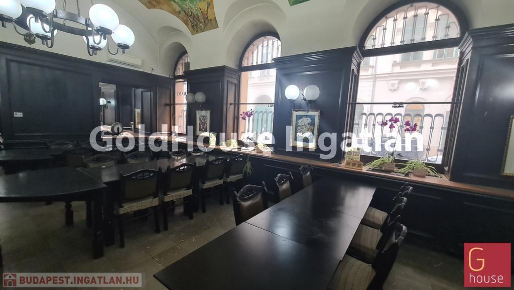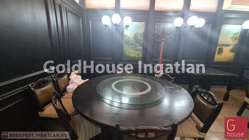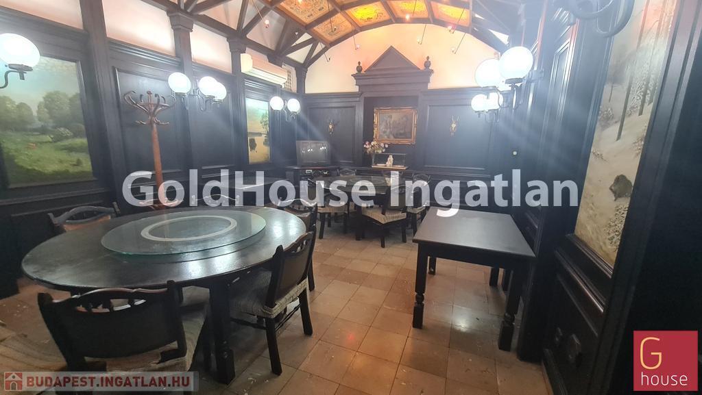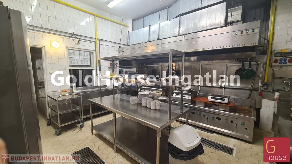 Az összesen mintegy 415 négyzetméteres alapterület két szinten helyezkedik el: a földszinten körülbelül 275 négyzetméteres, tágas vendégtér található, míg az alsó szinten egy közel 140 négyzetméteres, vendéglátásra is alkalmas pince került kialakításra. Az ingatlan korábban étteremként üzemelt, rendelkezik melegkonyhás engedéllyel, és teljes berendezéssel együtt kerül bérbeadásra, így akár azonnal megkezdhető benne az üzleti tevékenység. A vendégtér kialakítása lehetővé teszi nagyobb, akár 90 fős befogadóképességet, valamint egy elkülönített részben további mintegy 24 fő kényelmes elhelyezését.