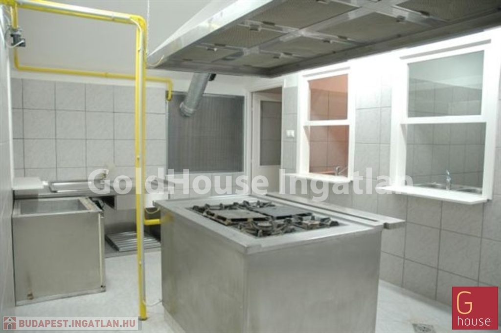 A vendégtér 200 nm-es, 4 teremből áll, a személyzeti terület 100 nm. Az üzlet padlófűtéses. A vendégtérben bárpult, a konyhában tűzhely, mosogatók kerültek kialakításra. Személyzeti bejárat, ipari áram, riasztó, hangtechnika, légtechnika van. A helyiség más tevékenységre is kiadó!
