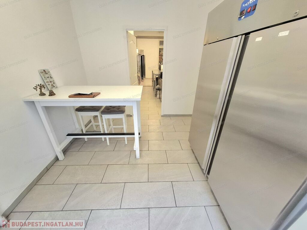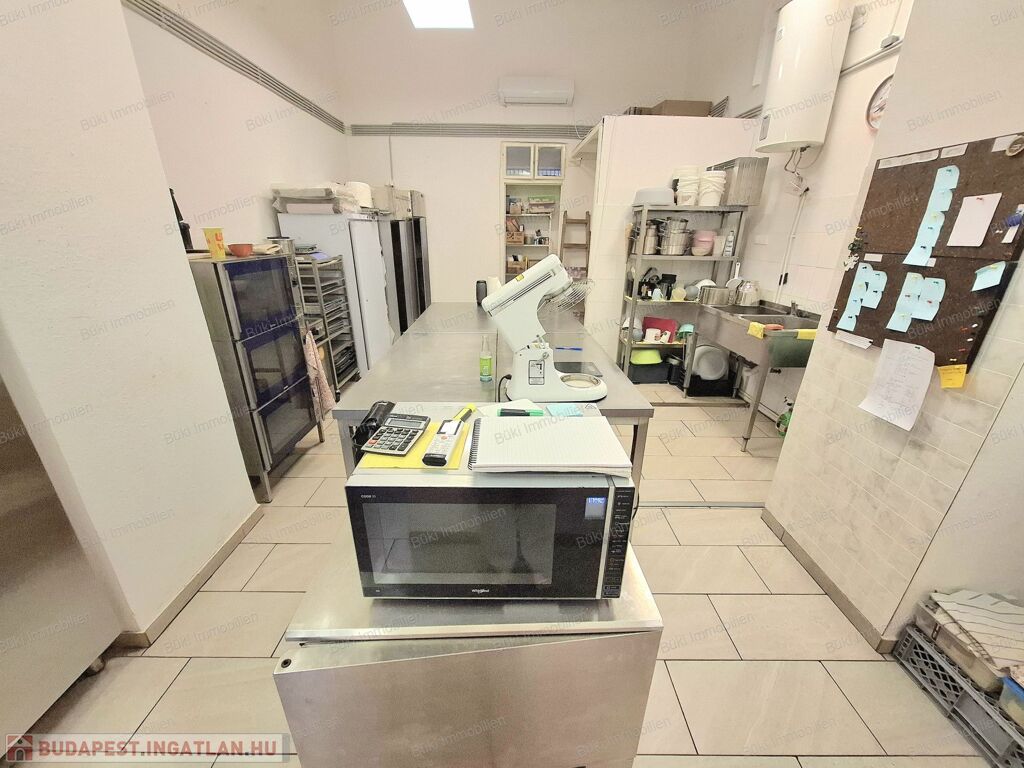 3×32A ipari áram, rozsdamentes bútorzat, háromrészes sütő, keverőgép, sokkoló, ipari fagyasztók és hűtők, tehát minden adott, hogy akár napi szinten nagy mennyiségű terméket lehessen előállítani. A klímás, tiszta és modern környezet pedig garantálja, hogy öröm legyen itt dolgozni, akár hosszú órákon át.
