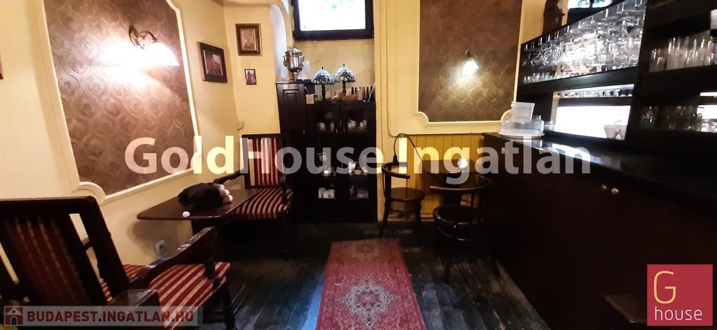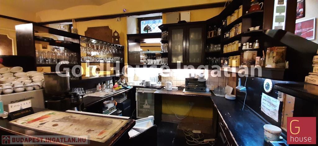 Minden engedéllyel rendelkező, évek óta közkedvelt szuterén kávézó-pub. Egy nagyobb, utcai ablakokkal rendelkező és három kisebb helyiségre tagolódik a vendégtér. Vendégmosdók, raktár, személyzeti mosdó, zuhanyzó kialakított. Téliesített terasz. Légtechnika, elszívás a tetőig felvezetve, bélelt kémény. Légkondi, kamerarendszer-a teraszon is, 3x16 A áramerősség.