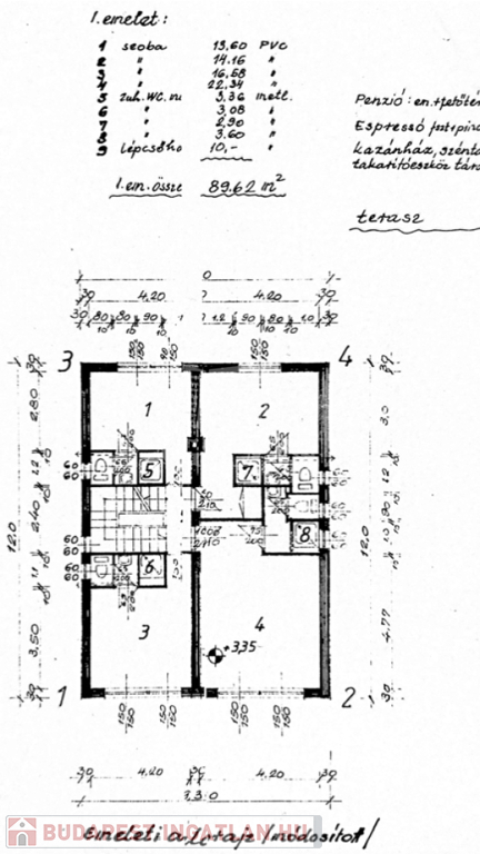 Méretezett helyiségeit lásd az alaprajzon.