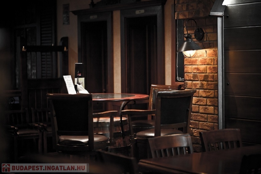 -A vendégtérben nagy üvegfelülettel rendelkező üvegportál, bőr és fa bútorzat, berendezés, egyedi csillárok, hangulatos dekoráció lett kialakítva.