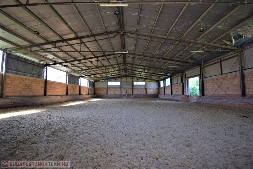 -966 m2-es csarnok/fedeles lovarda, magasított nézőtérrel, tégla oldalfallal, acél vázszerkezettel, lemeztetővel (23X42,