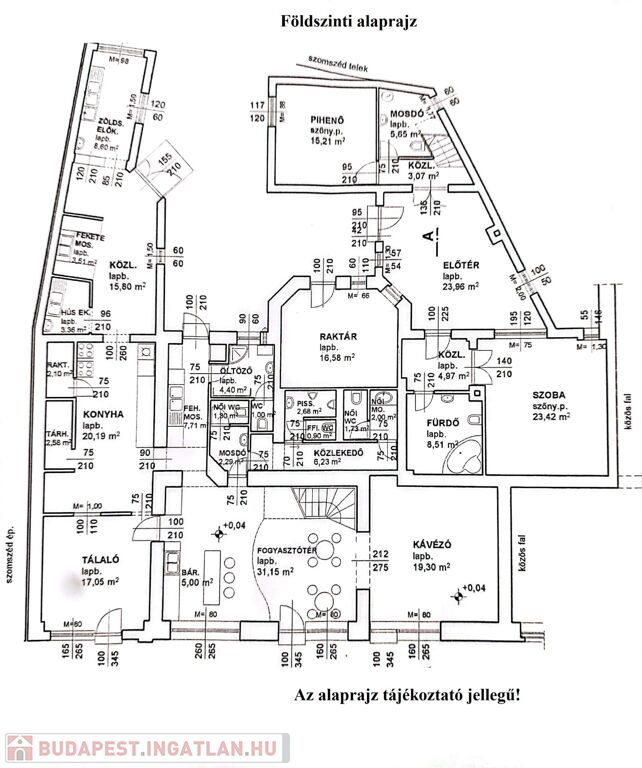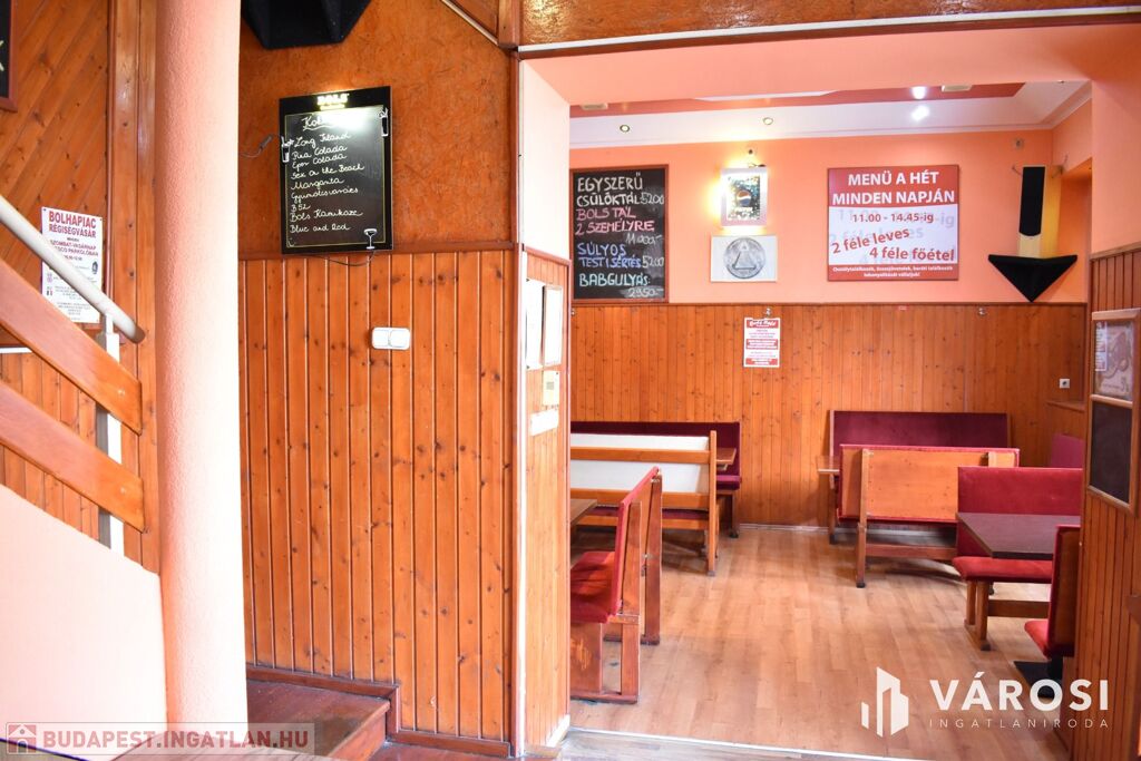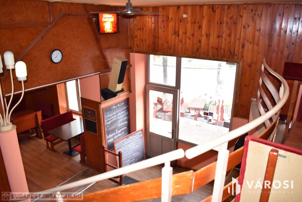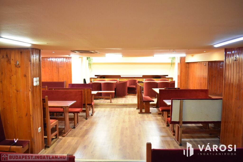 Az ingatlan földszinti részén lett kialakítva egy hangulatos és minden igényt kielégítő bárpult, egy éttermi vendéglátó rész, amely a kialakított szintén hangulatos galéria résszel közel 200 fő befogadásra alkalmas. A galéria rész ebből 104 fő befogadásra alkalmas, ahol a kialakításának köszönhetően zártkörű rendezvények lebonyolítására is tökéletesen alkalmas. A vendéglátó részen a közelmúltban lettek felújítva a vizesblokk (mosdó, WC) helységek is, amelyből 3 db. található az éttermi részen (férfi, női és mozgáskorlátozott). A vendéglátó egységhez tartozik egy hatalmas és modern eszközökkel felszerelt konyha, amely több részből áll, itt lett kialakítva egy pizza készítő, melegkonyha, előkészítő, mosogató, illetve több hűtő, raktár és mosdó helység is. A fűtésről 3 db gázkazán lapradiátorokkal, padlófűtéssel, a hűtésről klímaberendezések gondoskodnak. A vendéglátó részen az elektromos hálózat is korszerű, itt 3 x 72 A és ipari áram található.