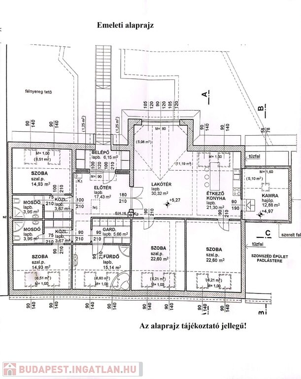 Az ingatlan összes területe: 455 m2