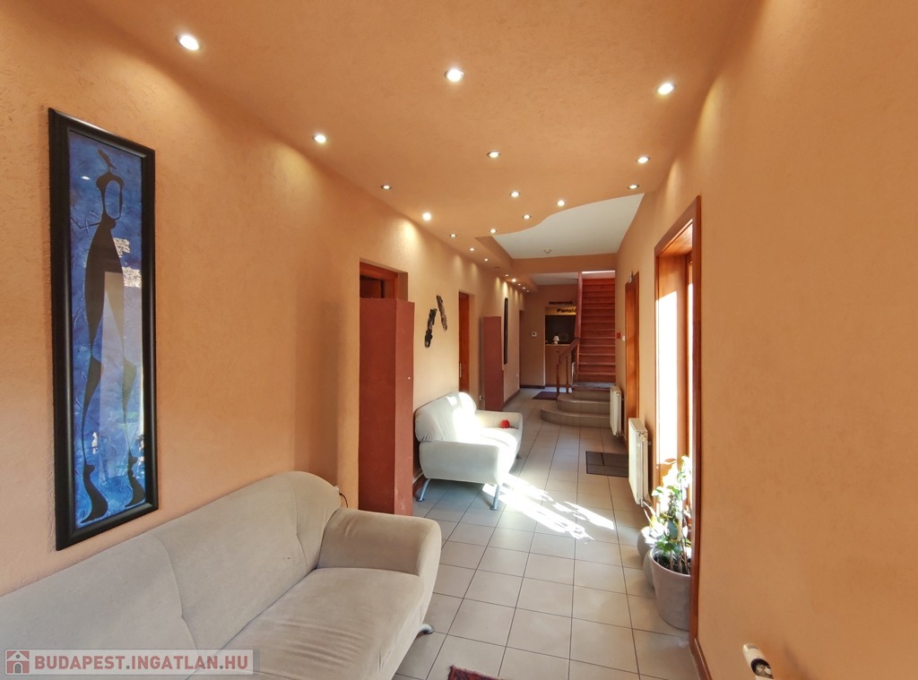 Kecskeméten a belváros centrumától 5 percre, a Malom Központhoz közel, csendes, zöld környezetben, tégla építésű, 190 nm-es, jó állapotú, 10 szobás panzió eladó