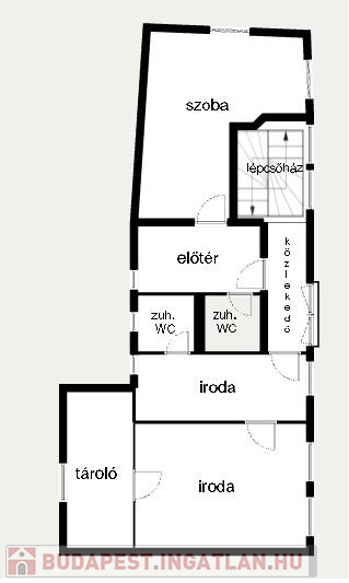 - az iroda megnevezésű ingatlan rész 40 m2, melyben egy több mint 20 m2-es irodát találunk irattárral, a kisebbik helyiségben pedig kis teakonyha-részt és innen nyílik a zuhanyzós mosdó is