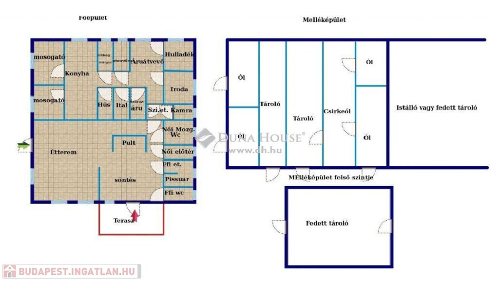 Tápiószentmárton központjától 5-10 perces sétányira eladó Porotherm N+A téglából épült vendéglátló egység - családi ház 90%-os késültséggel, mely étterem és italbolt építési engedéllyel rendelkezik - de akár családi házként/lakásként is át lehet minősíttetni és építeni! A 2007-ben épített épület nem volt használva, teljesen új - 166 m2-es, melynek tetőtere is beépíthető kb. 100 m2! Minden szükséges irat/dokumentum/engedély meg van hozzá!A közmű kiállások valamint gáz és vízrendszerre a csövek kiépítése megtörtént (gázcirkós fűtésnek lett tervezve), de kéménnyel is rendelkezik az épület, így akár kandalló, vegyestüzelésű kazán, vagy kályha is elhelyezhető benne! A villany 32 amperes!Az épület betonalapra épült 30 cm vastag POROTHERM 30 N-F falazóblokkból PTH TM min. habarcsba falazba. A válaszfalak 10 cm vastag PTH válaszfallapokból. Tetőszerkezete sátortető, mely fenyőből készült és TONDACH hornyolt, íves vágású zsindelytető. A nyílászárók DUFATHERM tip. hőszigetelő üvegezésű ablakok, hevedertokos belső ajtókkal. Burkolat: kerámia járólapok. A fűtést földgáz üzemű turbo fali fűtőkészülékre (Thermomax Condens 24K), radiátoros melegvízfűtésre tervezték - ennek kiállása és elosztója már kiépített! (készülék az nincs hozzá).Az épületben az alábbi helységek kerültek kialakításra: étterem,söntés,ffi Wc előtér,pissoár,ffi Wc,női WC előtér,női és mozgáskorlátozottWc,fekete mosogató,fehér mosogató,konyha,zöldség előkészítő,hús előkészítő,göngyöleg raktár,ital raktár, szárazáru raktár,közlekedő,áruátvevő,hulladék tároló,iroda-öltöző,személyzeti Wc előtér,személyzeti Wc.Az előírt helységekben (konyha, mosogató, előkésíztők, göngyöleg tárolók, italraktárban, hulladéktárolóban, wc-kben, pissoárokban 2,10 m magasságig csempeburkolat található az oldalfalon, padlózaton kerámia burkolat és padlóösszefolyó berendezésekkel ellátva.Szellőzésre természetes ill. légkondícionáló berendezések kerülnének elehlyezésre a tervek szerint. A belső fekvésű helyiségek pedig gépi szellőzésűek - szellőzőkürtővel szellőznének.A telken belül a gépkocsik parkolása megoldható!Az épület betonúton megközelíthetőKözelben orvosi rendelő, posta, ABC, vegyesbolt, óvoda, zöldség-gyümölcs bolt, általános iskola, sporttelep, tanuszoda stb.Tápiószentmárton híres látványosságai: Kincsem park/Attila domb valamint az üdülőterületen lévő gyógyfürdő is nyáron kellemes kikapcsolódást kínál és a túristáknak pedig a környékbeli tanösvények felfedezése (Kékbegy tanösvény stb.)Közlekedés: Nagykáta és Cegléd között volánbusszalBudapest Keleti pu - Szolnok között vonattal
