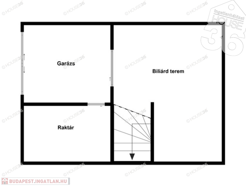 -90 m2 pince, ahol a biliárd terem, raktár, garázs található,