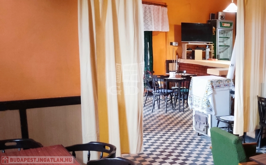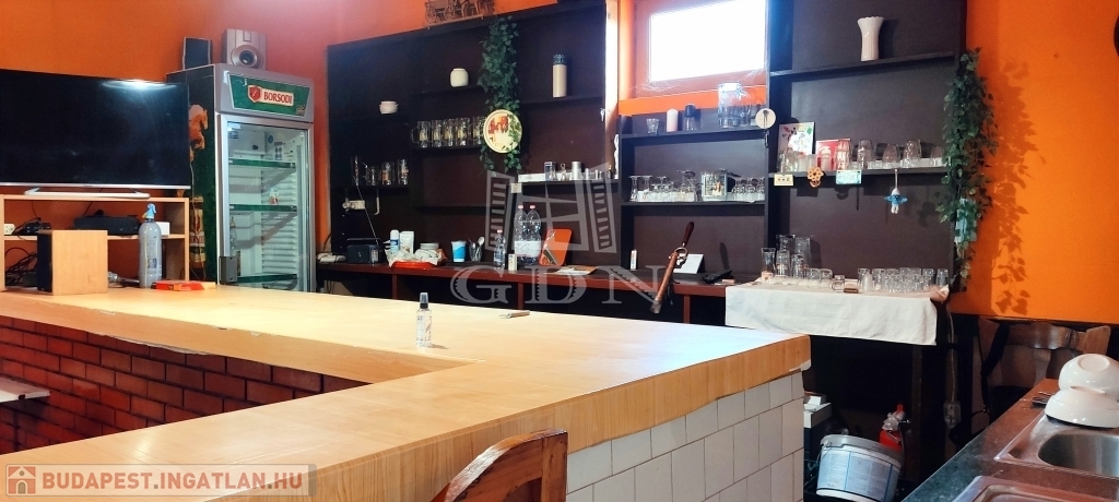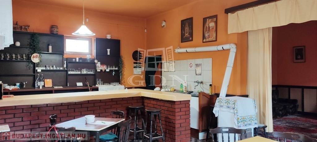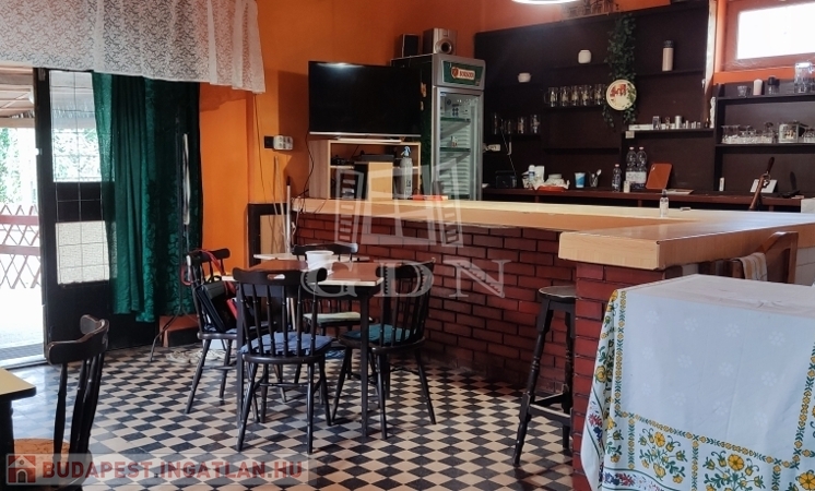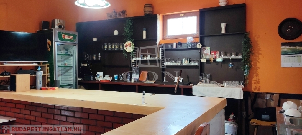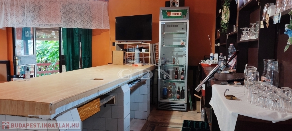 A terasz felől közelíthető meg a pulttal rendelkező 43 m2 alapterületű helyiség, ezen át pedig a másik vendégtér, valamint külön női és férfi mosdók.