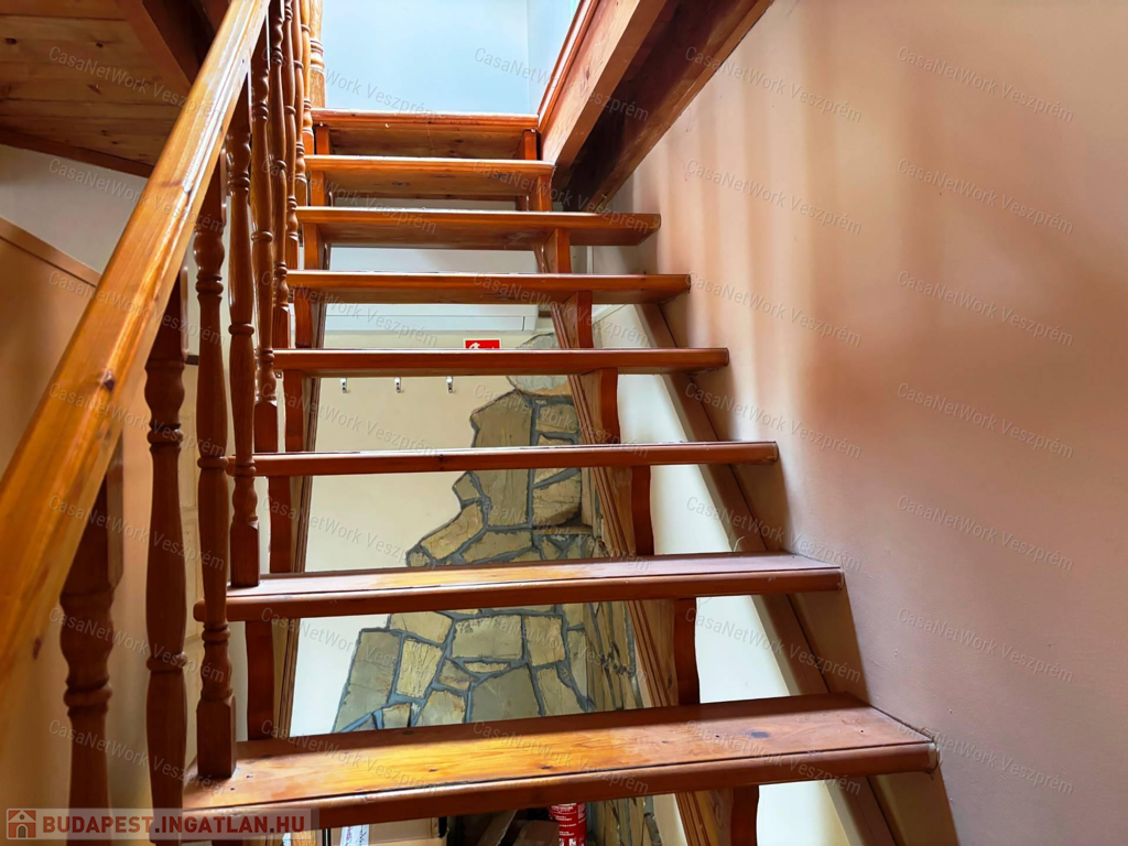 - Masszív fa lépcső vezet az emeletre