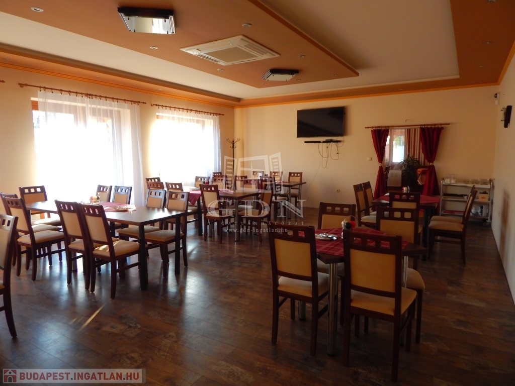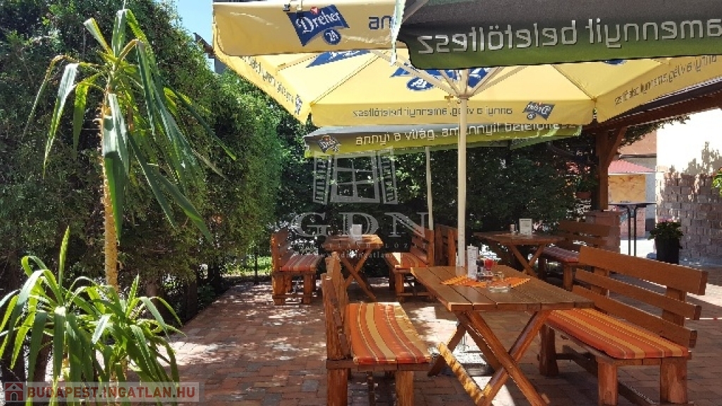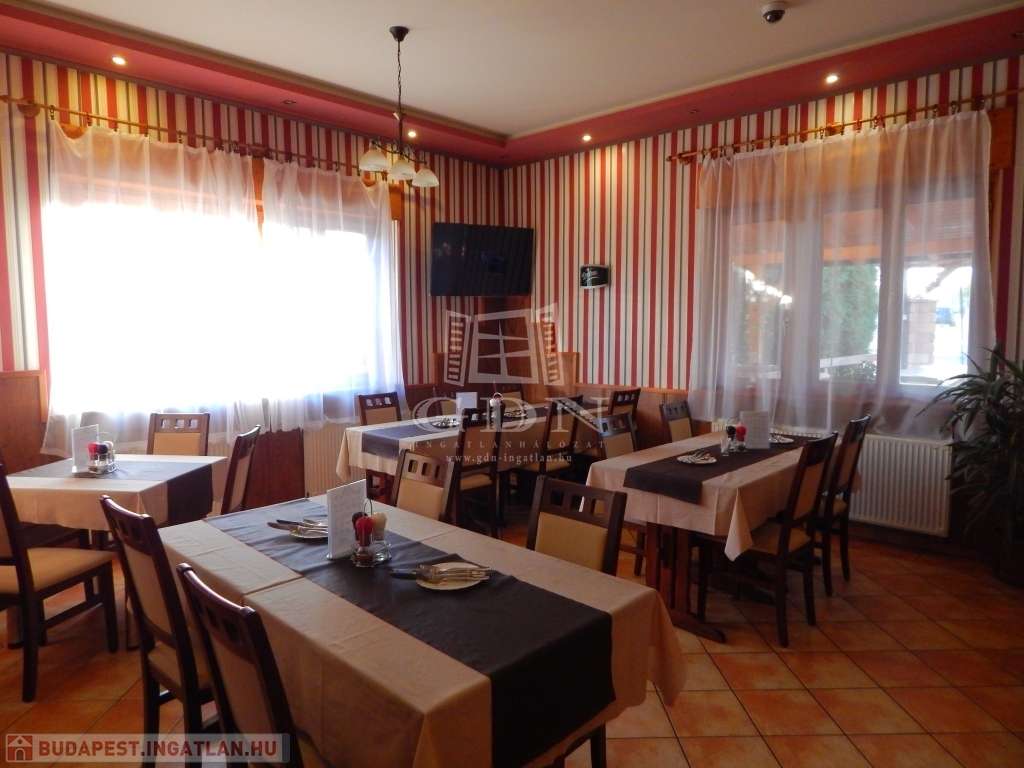 Az étteremhez tartozik egy 100 m2-es térkövezett terasz- 7 nagy asztallal-, 2 nagyterem kb 100 fő befogadására alkalmas, bárpult, konyha és több előkészítő helyiség, 2 különálló vendég vizesblokk és egy pincével rendelkező raktár.