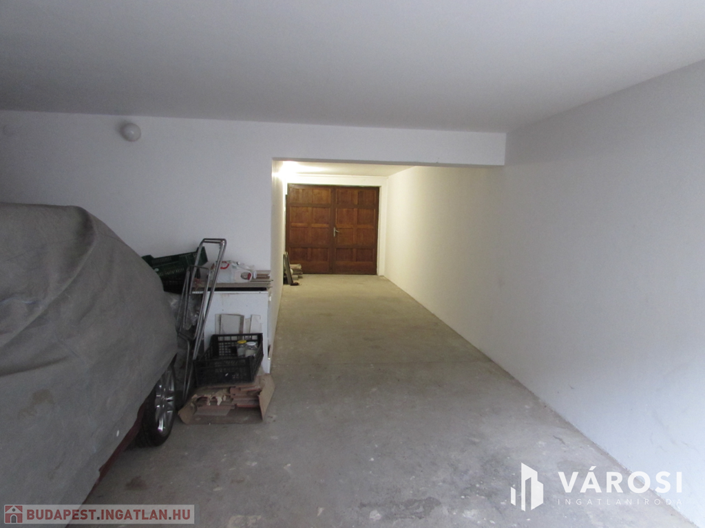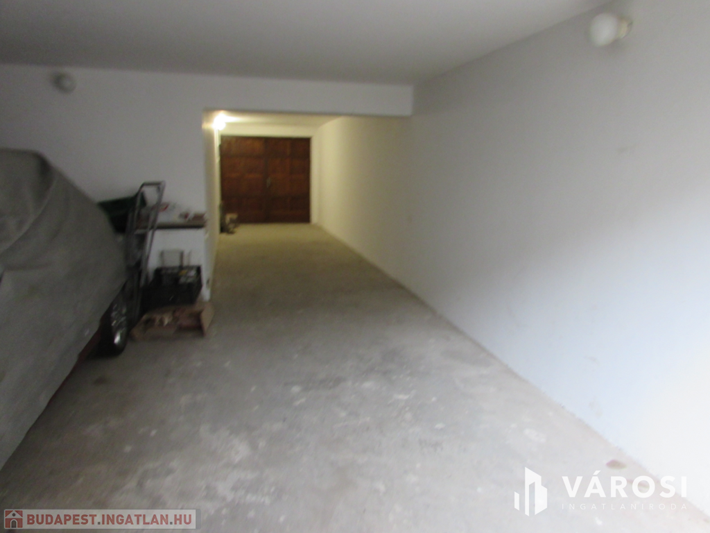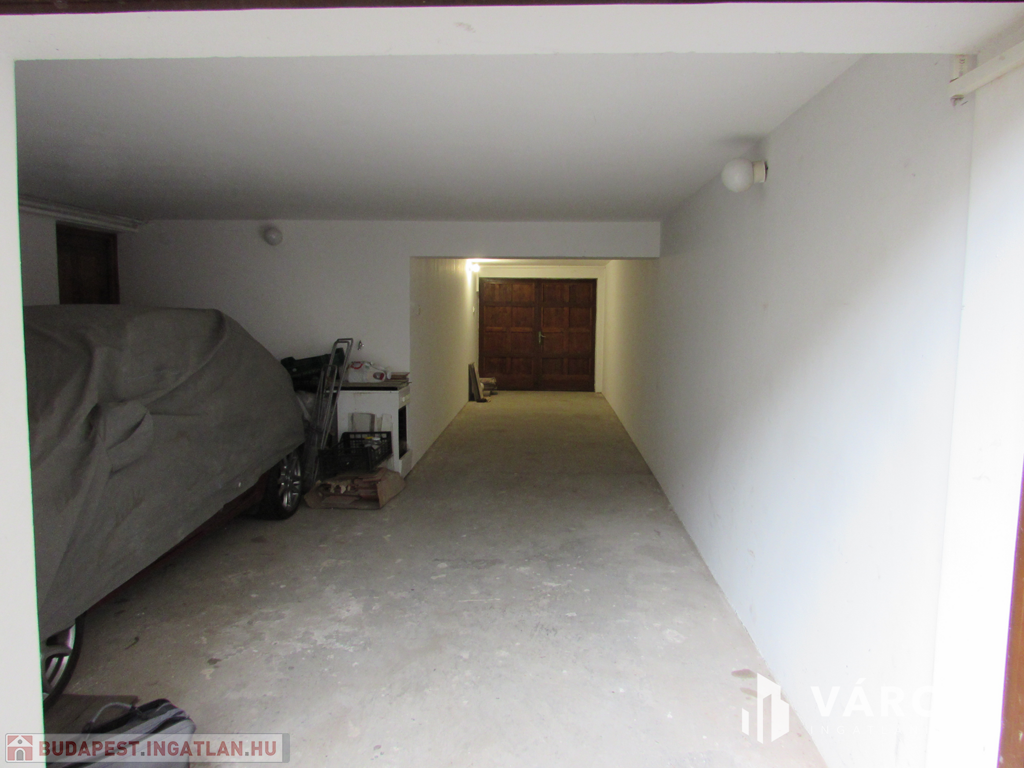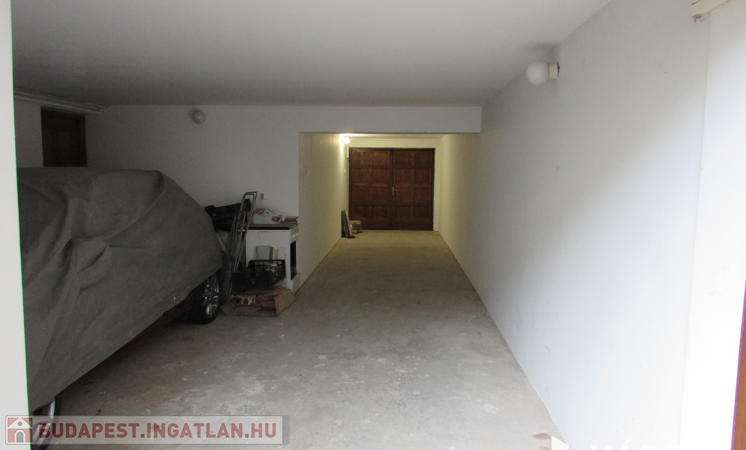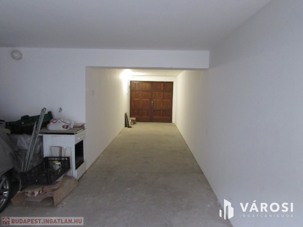 A garázsban áram áll rendelkezésre. A fa kétszárnyú garázsajtó 2 méter széles. A garázsba 2 autó egymás mögött elfér, de a helységet legcélszerűbb raktárnak használni. A tulajdonos is raktárnak szeretné kiadni.