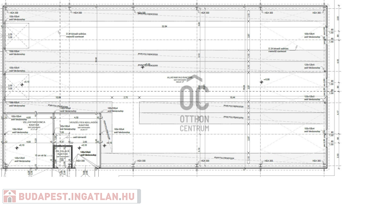 Alapanyag raktár: 520,3 m2 (16,17 x 32,18 m) üzemcsarnoktól különálló épület