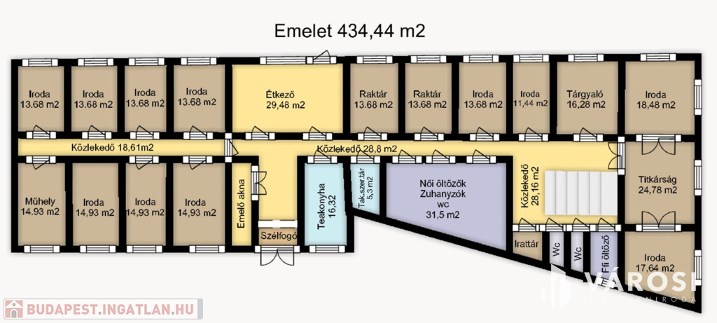 A hirdetésben a tetőtéri szint, 382 m2 lett meghirdetve, de az első emeleten lévő irodák is kiadóak.