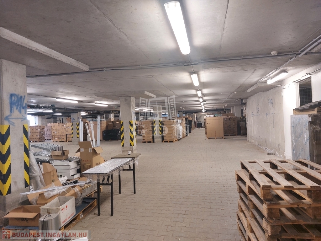 A raktárterületet az épület mélyszintjén található 2,6 m belmagasságú, tömbös tárolásra alkalmas.