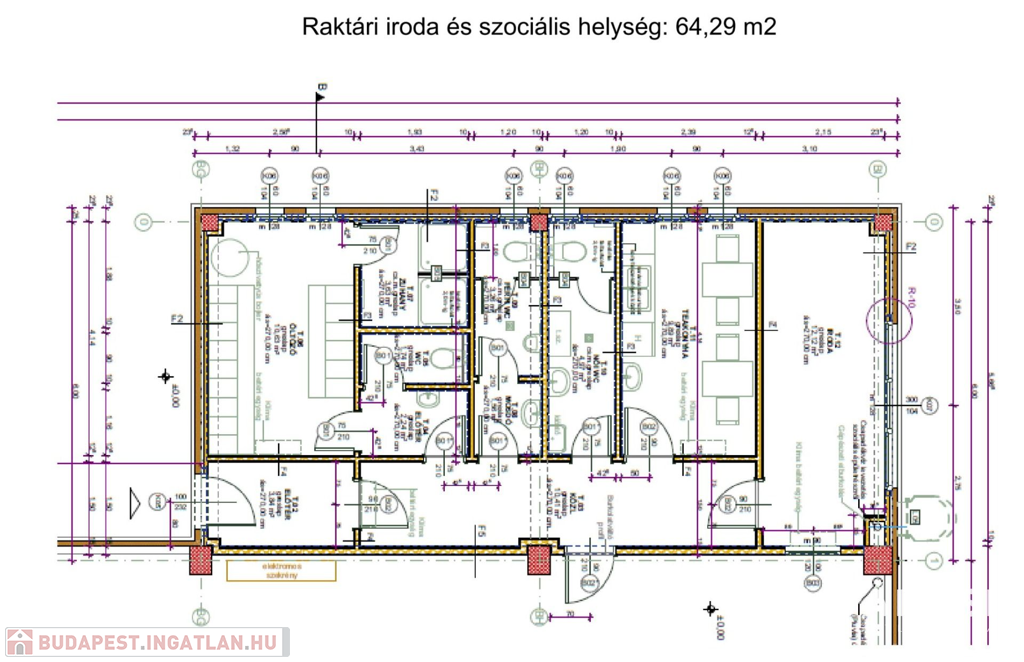 Az ipari létesítmény földszintjén helyezkedik el a termelői rész, a raktárcsarnok, valamint az irodai és szociális helyiségek (öltöző, kézmosó, férfi és női WC, zuhanyzók és teakonyha).
