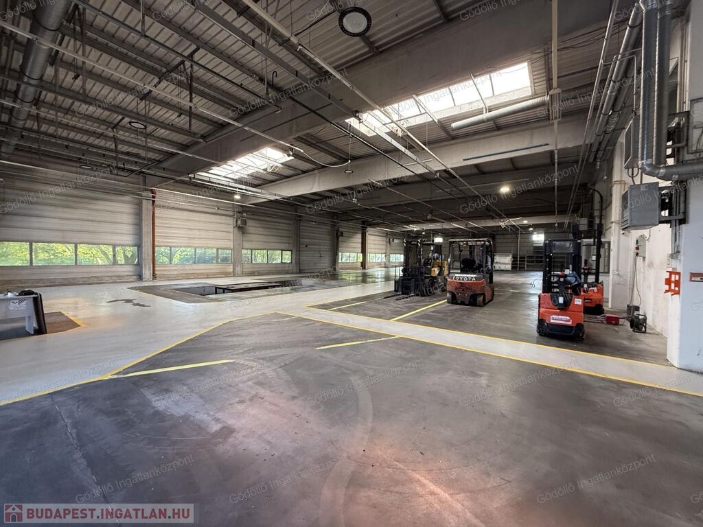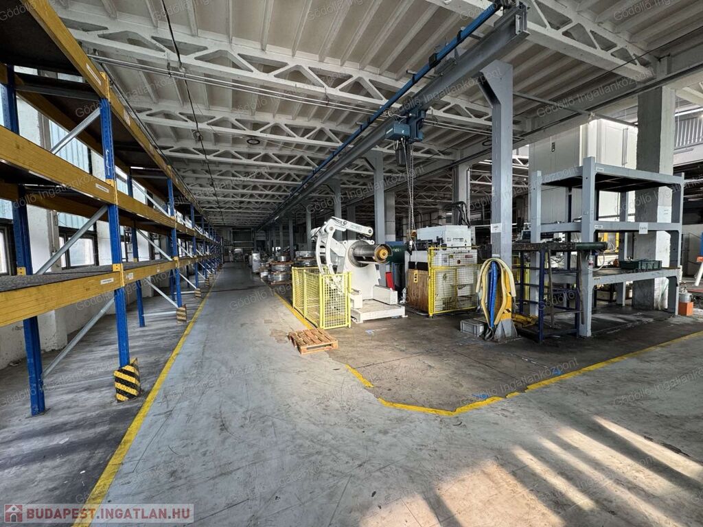 A gyártócsarnokban két daru üzemel, az emeleti irodákból kiválóan belátható az egész üzem. Kiépített kamerarendszerrel, led világításokkal felszerelt.