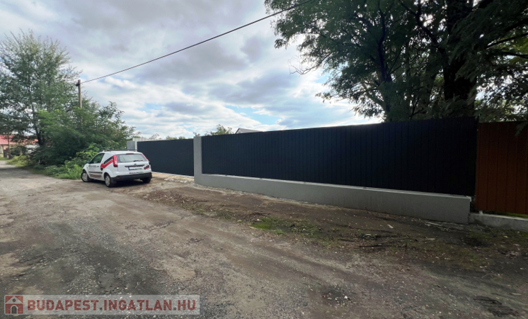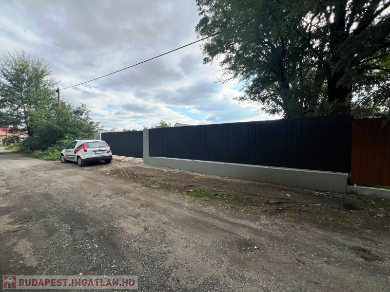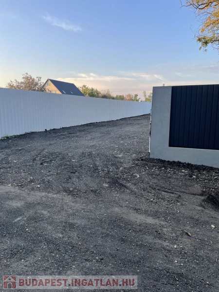 16méter széles, teljesen bekerített, 6méteres nagykapuval,martaszfalttal.