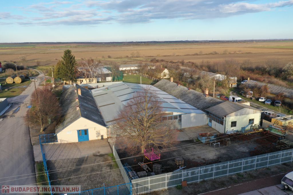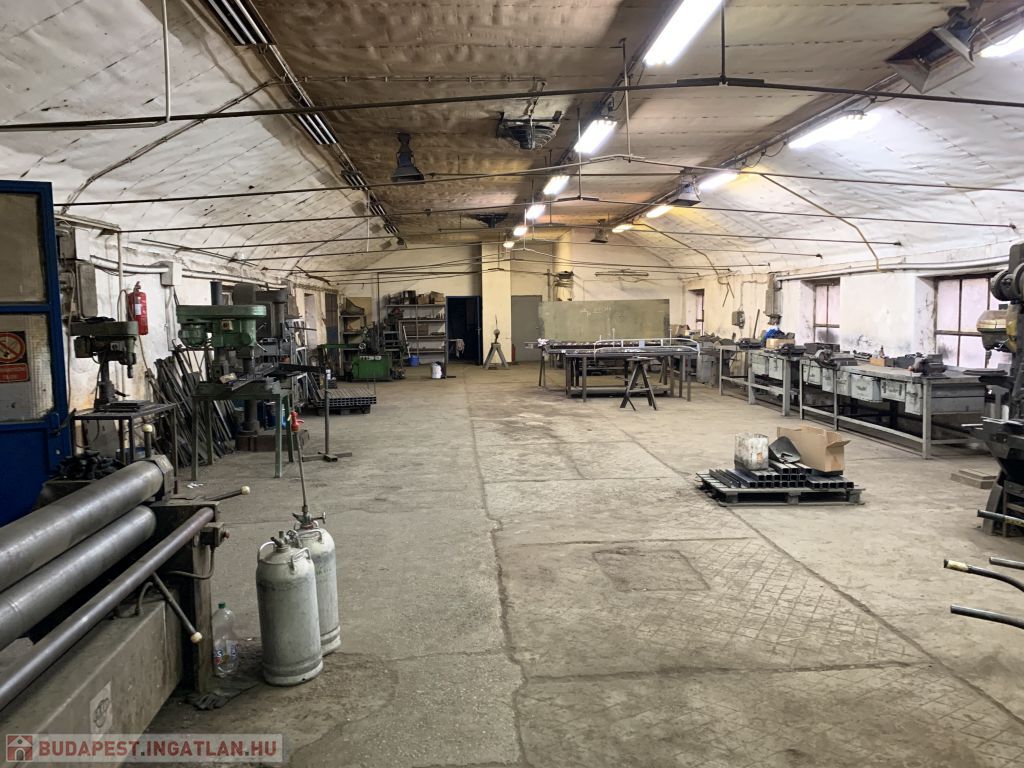 Gyártásra alkalmas, fűthető csarnok rész mérete 860m2, a belmagassága 3,2-3,6m közötti.