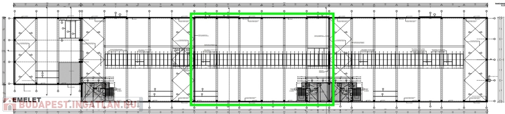- Szerkezeti elemek: vasbeton oszlopok és gerendák