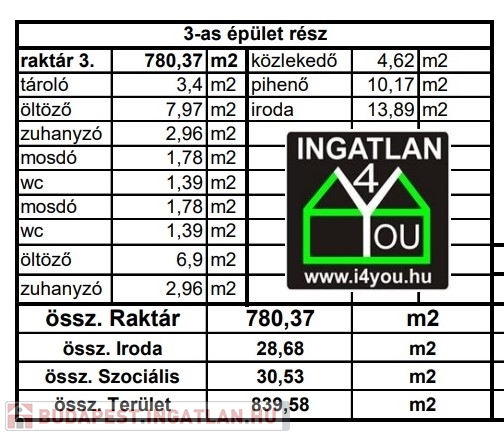 - Raktár csarnok: 780 m2