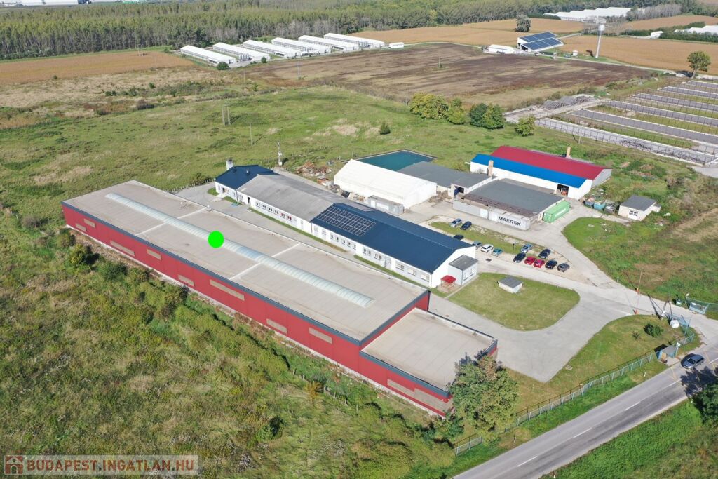 A Győri Ipari Park, jól megközelíthető részén, 2012-ben épült, 839 m2-es (780 m2-es fűthető raktár csarnok, 58 m2-es iroda/szociális felület), gyártó/raktár csarnok eladó.