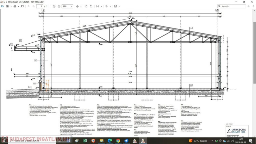 - Tető: 14 cm vastag hőszigeteléssel ellátott acél trapézlemez