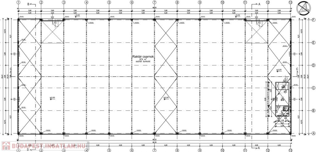 - Raktár csarnok: 974 m2