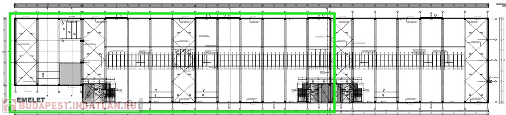 - Szerkezeti elemek: vasbeton oszlopok és gerendák